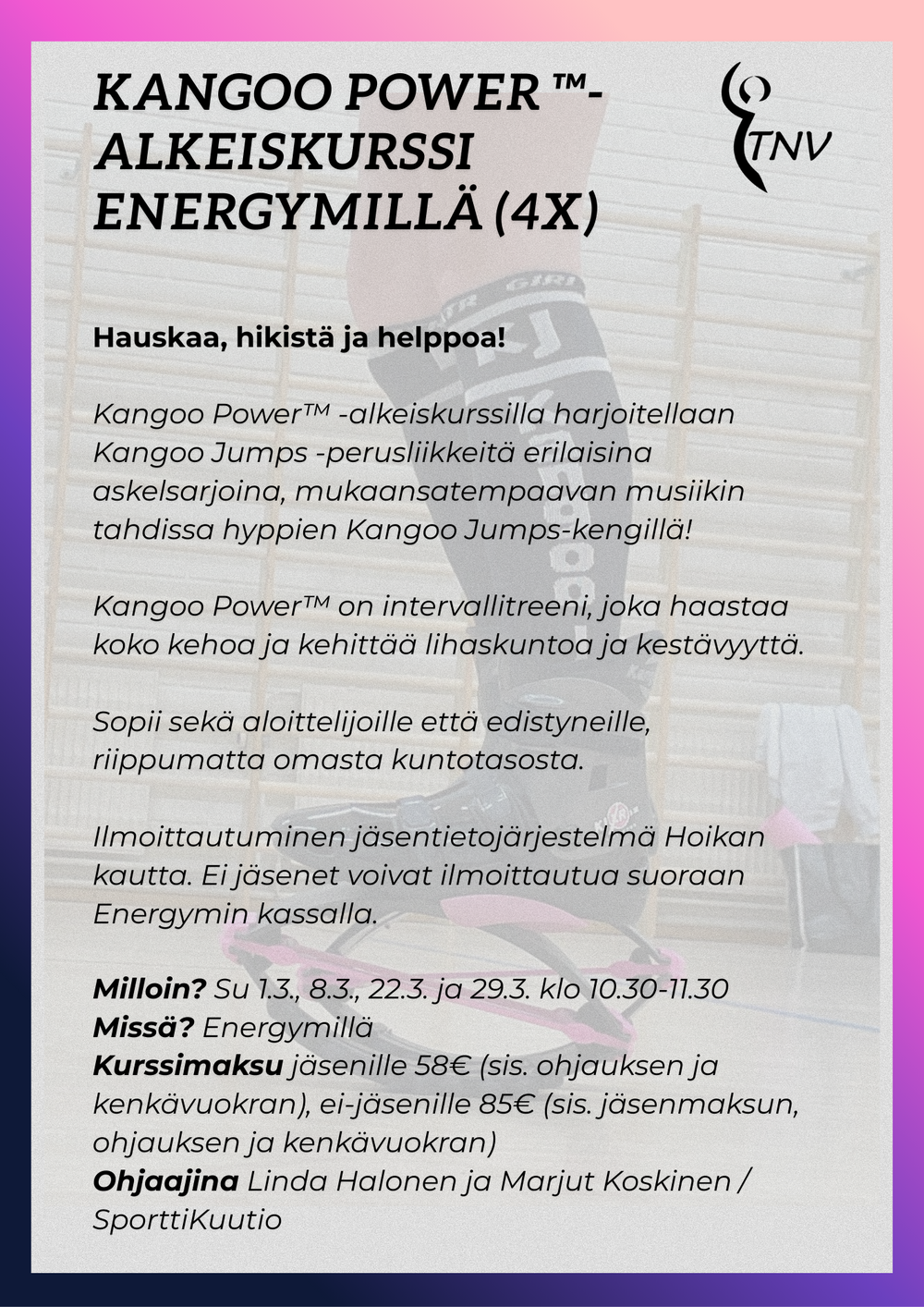 Kangoo Power™ -alkeiskurssi maaliskuussa - ilmoittaudu mukaan!