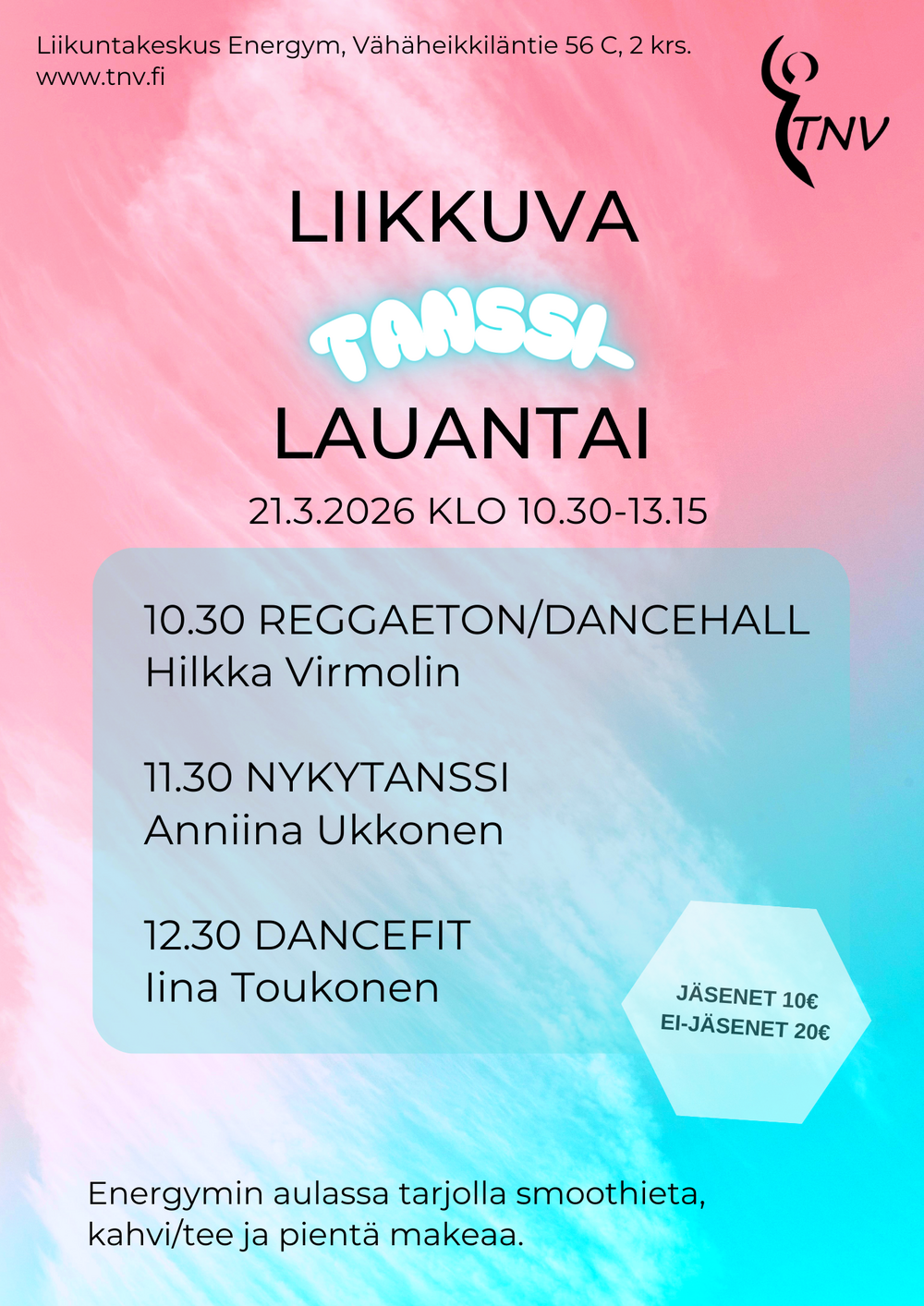 Liikkuva tanssilauantai tarjoaa mahdollisuuden tutustua uusiin tanssilajeihin ja liikkua iloisessa ilmapiirissä. Tapahtuma sopii kaikille, ja se keskittyy tanssin iloon sekä yhdessäoloon. Tarvitset…