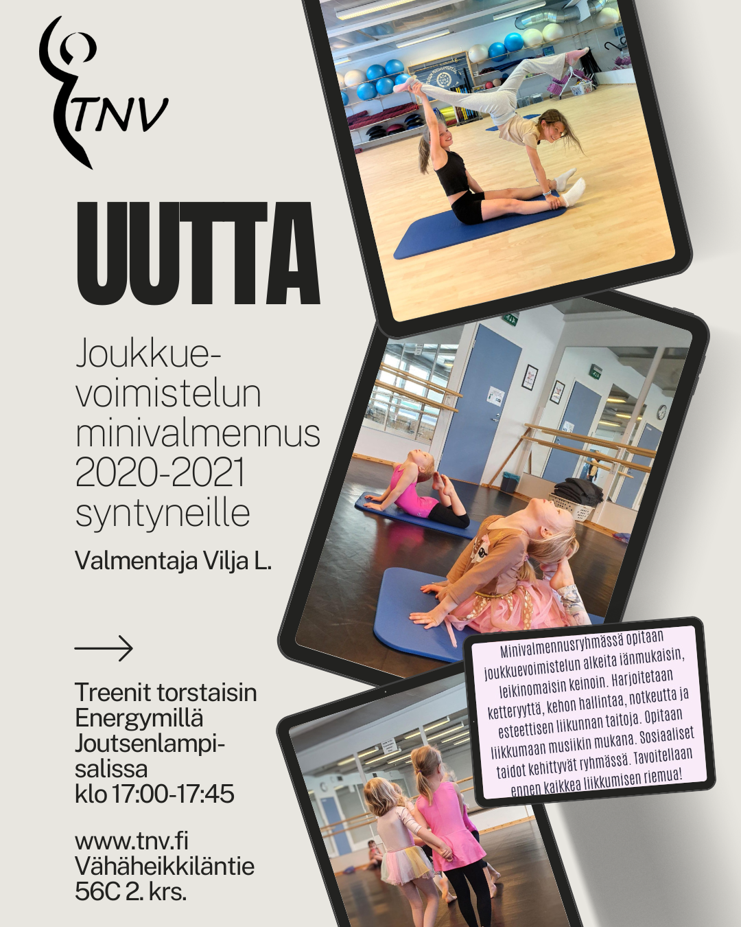 Ilmoitamme ad hoc tuntiperuutuksista ja muutoksista ensisijaisesti WhatsApilla. TNV:n WhatsApp-ryhmään pääset liittymään TÄSTÄ