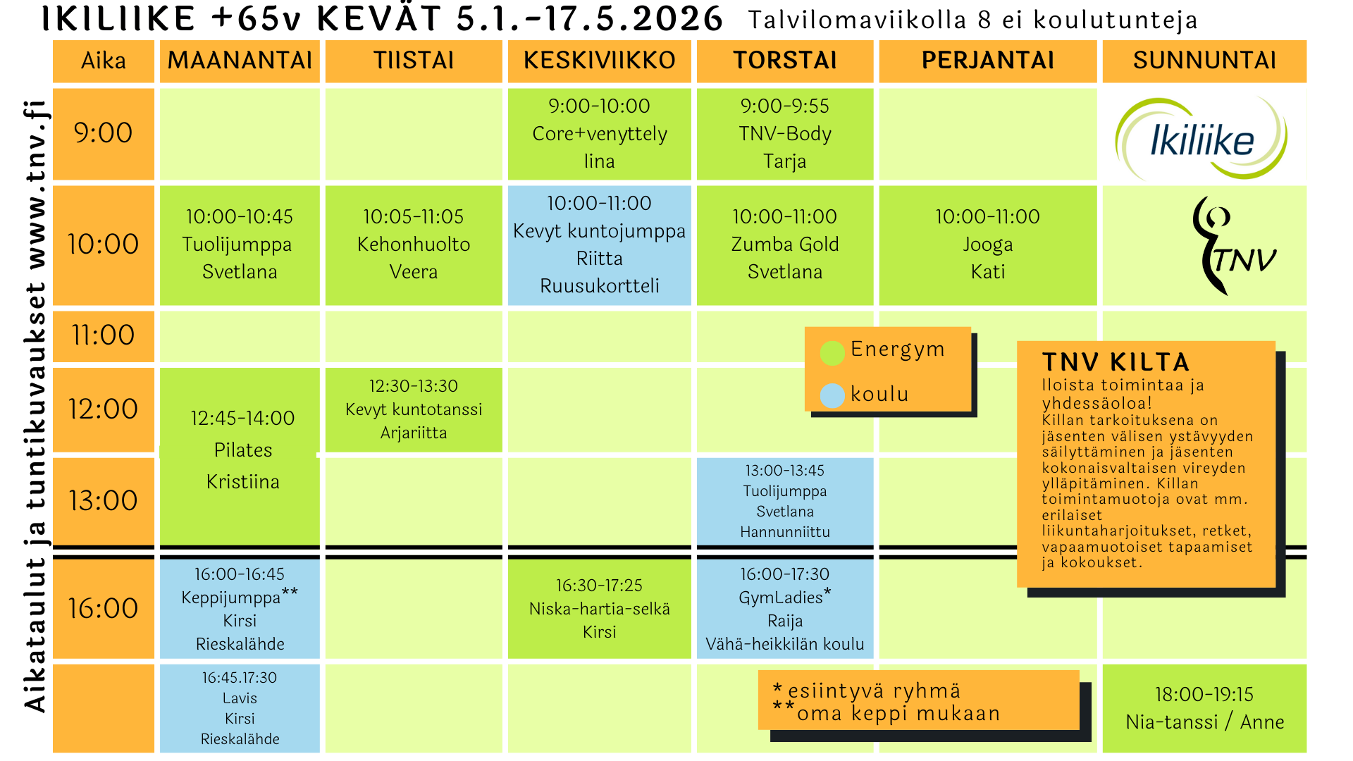 IKILiike tulostettava aikataulu kevät 2026
