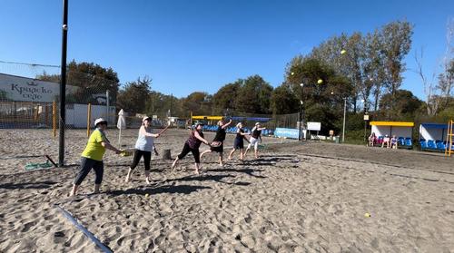 Gym Ladies -ryhmä on neljänkymmenen voimistelijan ja muutaman avecin kera mukana tapahtumassa. Omien esitysten lisäksi leidit pääsevät tutustumaan upeaan kaupunkiin ja Bulgarian kulttuuriin. Maanantaina ryhmä pääsi esiintymään Sea Gardenin luonnonkauniissa maisemissa, mitä upeimmalla paikalla, rannan läheisyydessä. Yllä kuva Gym Ladien maanantain City Performance -esityksestä. Raija Nurmen luotsaama Gym Ladies -ryhmä esiintyy viikon aikana yhteensä kolme kertaa - kaksi City Performance -esitystä sekä päätösgaalassa.