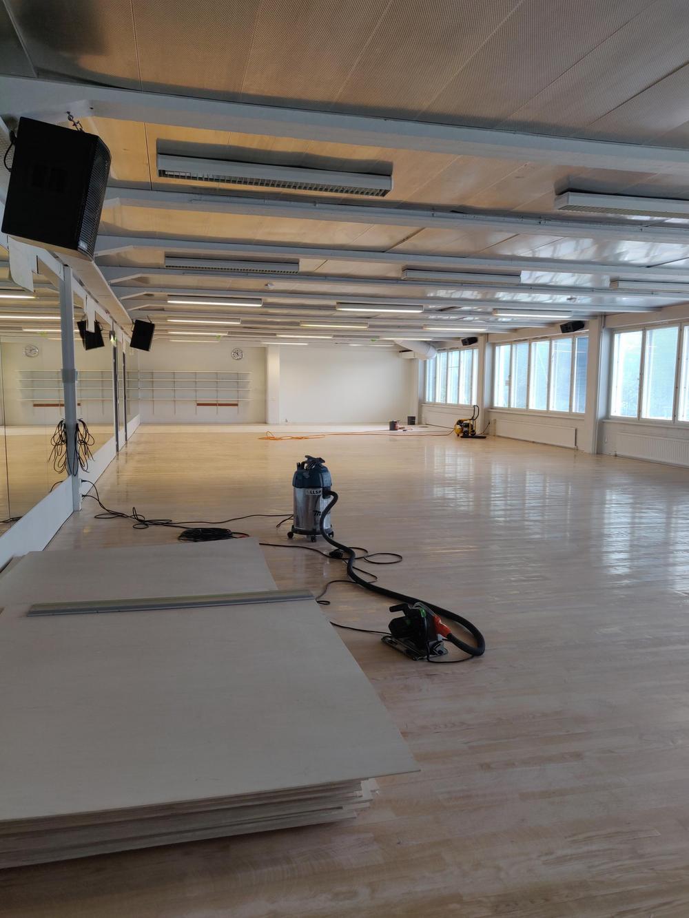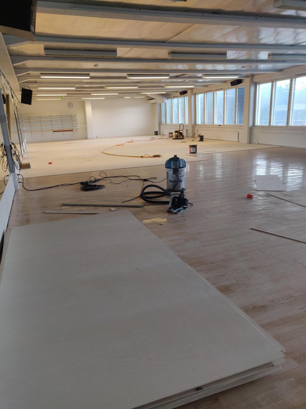 Toivottavasti ensi viikolla päästään jo nauttimaan uudistuneesta salista ja uudesta lattiasta!