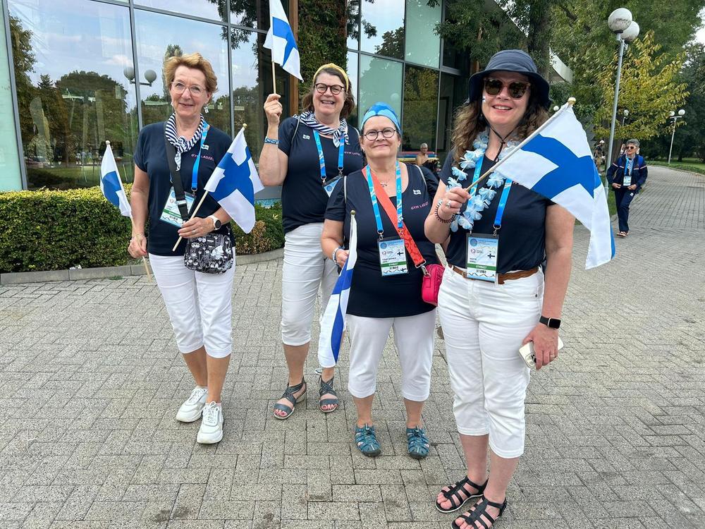 Tapahtuma on käynnistynyt eilen iloisissa tunnelmissa avajaismarssilla ja -tapahtumalla, jossa jokaisen maan ryhmät ovat edustettuna. Suomesta lähtijöitä on useilta eri paikkakunnilta useista eri seuroista. Tapahtumapaikkana Bulgariassa toimii upea puistoalue merenrannan välittömässä läheisyydessä. "Täällä on lämmintä +25 ja vehreää kaupungin keskustassa. Aivan ihana ranta!", toteaa Leena Larsio.